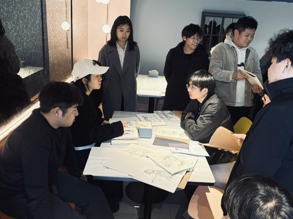 本次实训学生还考察了优秀校企实践基地沈阳山石空间设计咨询有限公司,企业代表讲授了企业文化、项目范围、岗位基本技能及要求等多项重点内容,并向学生们发出实习邀请。学生亲身触摸材料质感,观察空间营造细节,与设计师面对面探讨人居美学,在项目实践中学习成长。