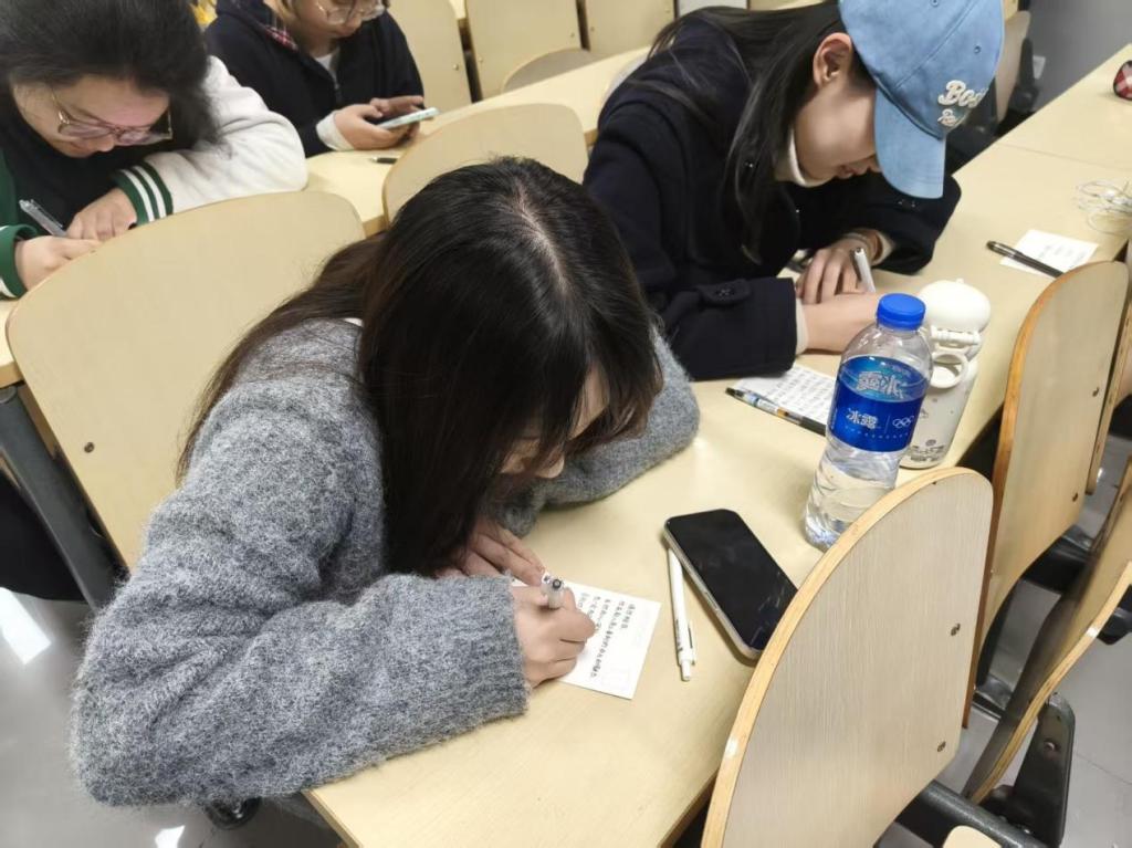 同学们拿起明信片,认真写下与自己的专属约定:可以是对未来的期许、对情绪的包容,也可以是坚持热爱、不内耗、不焦虑的生活态度。一字一句,都是对自己最温柔的承诺。
