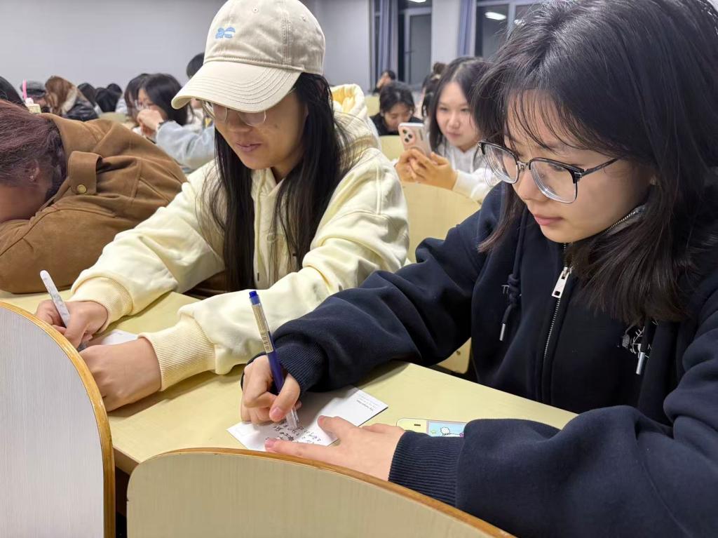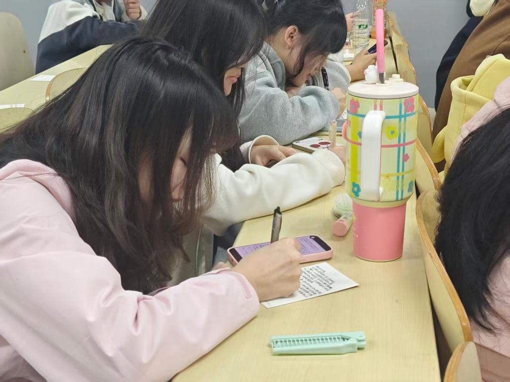 活动现场以“静心觉察、约定书写、心意共鸣”为主要环节,用沉浸式体验帮助同学们卸下压力、直面心声,在与自己的对话中收获力量。