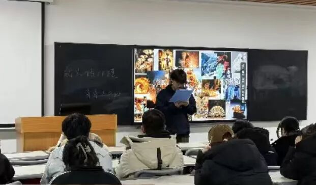 活动伊始,《大国工匠》纪录片片段缓缓呈现。匠人掌心的老茧镌刻着岁月的坚守,非遗成品的细腻流转着技艺的温度,瞬间将全场带入沉浸氛围,静心感受匠心传承的动人力量。随后,十位同学依次登台,讲述非遗故事,以生动讲述打破“非遗即陈旧”的刻板印象,引发阵阵掌声。同学们专注的神情与真诚的回应,无不传递出对非遗文化的尊重与热爱。