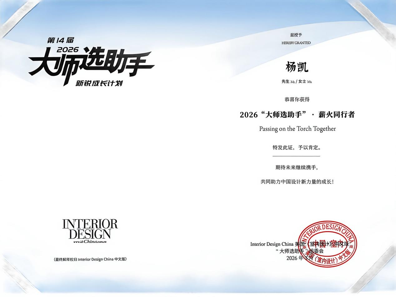杨凯老师获得2026“大师选助手”薪火同行者证书